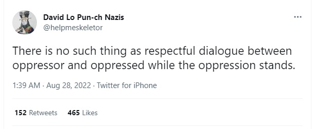 There is distinct, deafening COGNITIVE DISSONANCE and/or deliberate misdirection. Conversations are not moving forward because of such bad faith, circular discussions, aka “debates” wherein Natives and other POC are asked to “debate” with those who are apathetic “devil’s advocates”, who try to downplay or “good people on both sides” the issue or outright defenders of racism. In all of it, it is seeking to continue control over all narratives relating to Native Americans, whether fictional or non-fictional, which continues to cause discrimination against Natives in society.
