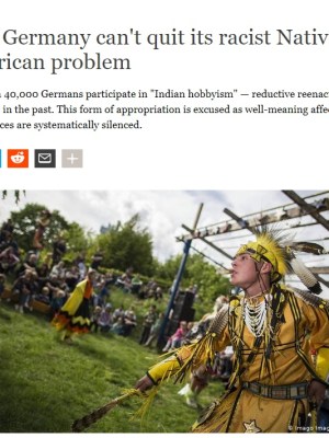 For Deutsch speakers, a new article in OYA magazine by Sönke Bernhardi on cultural appropriation and misuse of Native spirituality in the Left, Liberal and “eco-movement” groups. It’s titled “Vergesst Winnetou!” and available also for reading at our German website here.